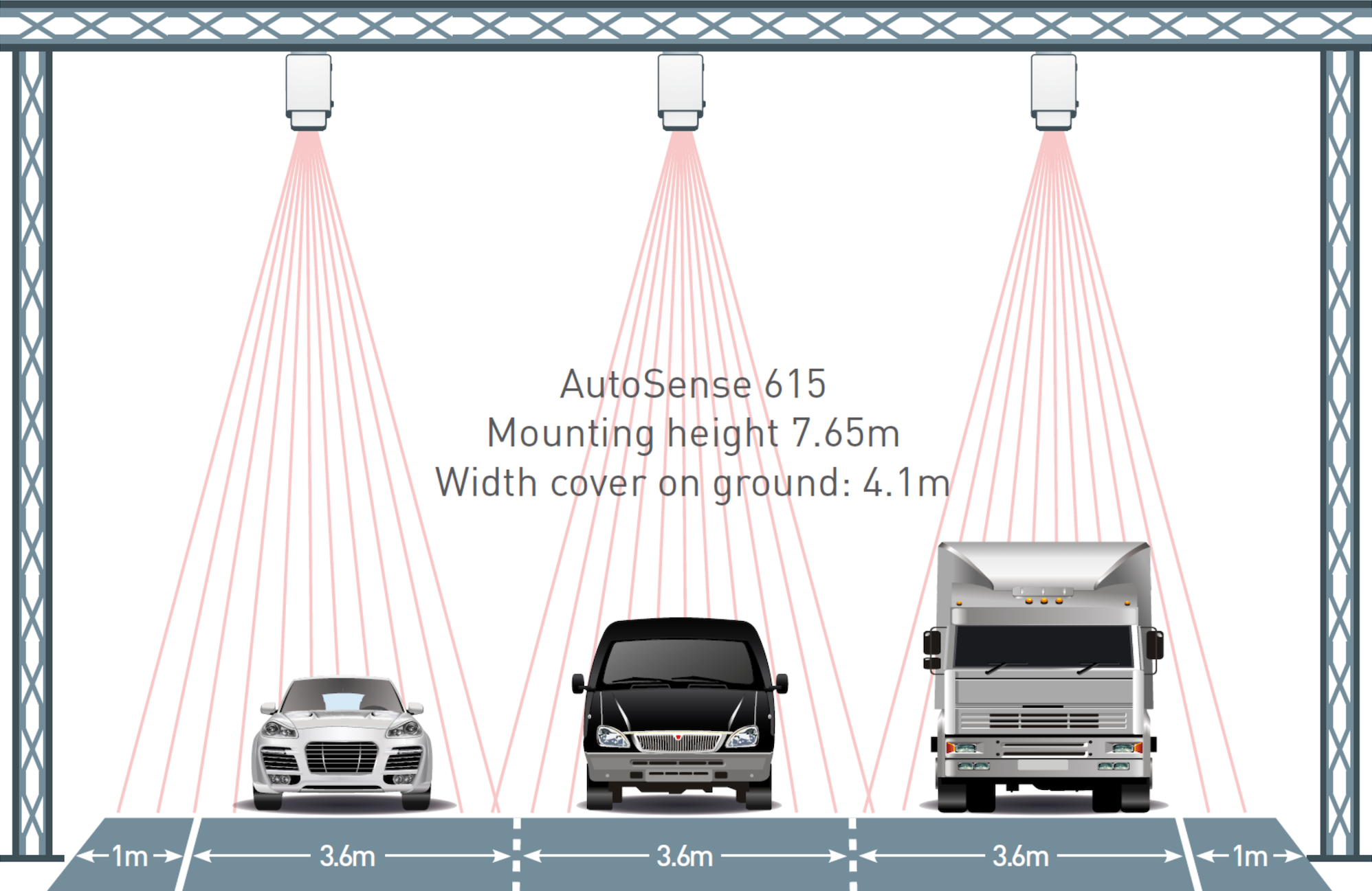 Single Lane - Open Road or Toll Barrier to achieve vehicle detection, separation, classification and camera trigger |